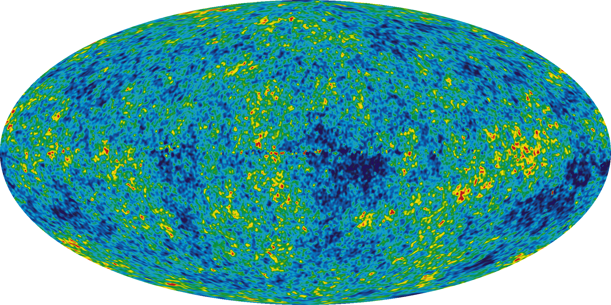 An image of the temperature fluctuations in the cosmic microwave background from the WMAP mission after 5 years of observations.