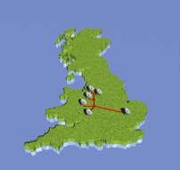 ![]() The locations of the e-MERLIN telescopes to be linked by fibre optic cables |