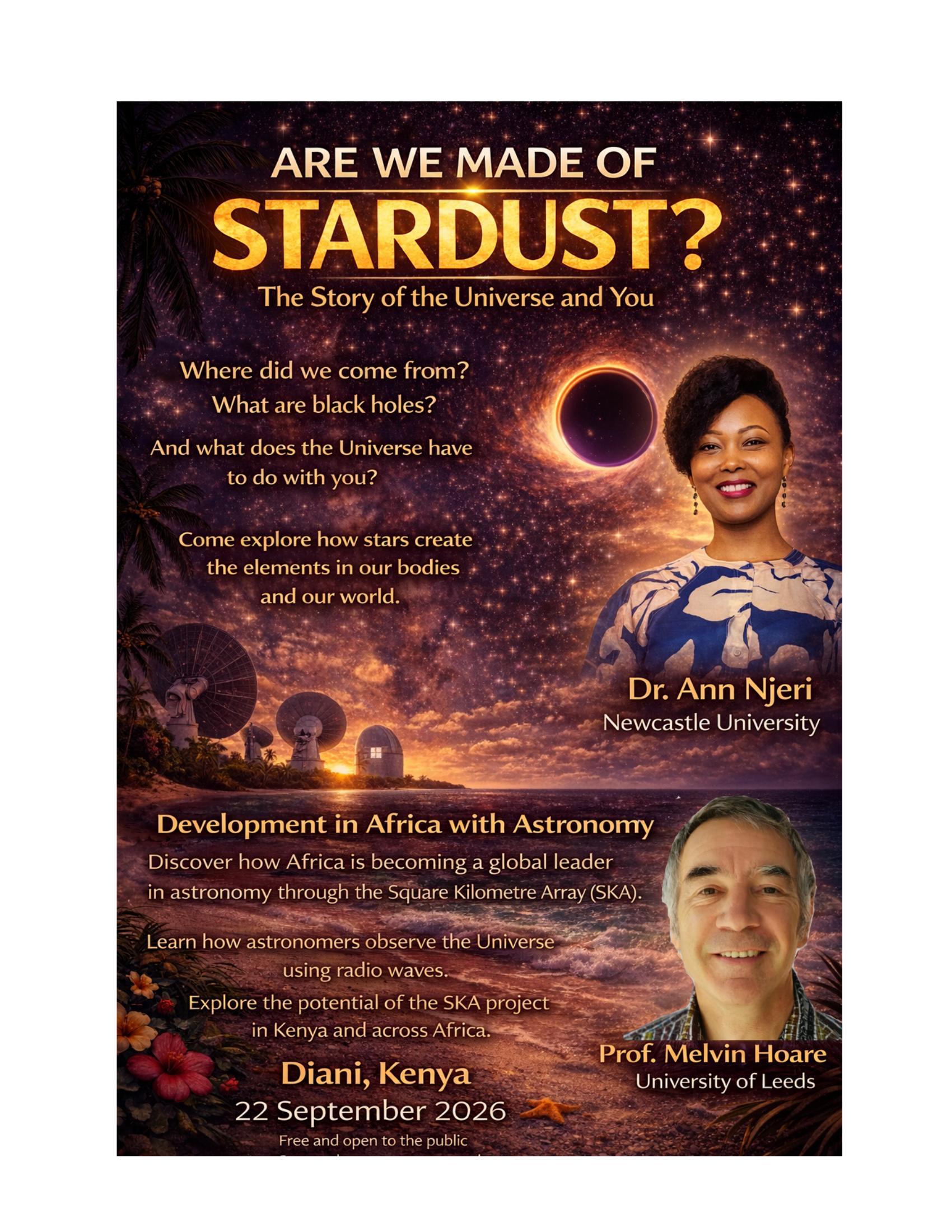 A public lecture open to conference participants, school children, and the local community, followed by a stargazing event on the beach. Held at the Diamonds Leisure Beach & Golf Resort Conference Hall. See Outreach & Public Engagement for full details.