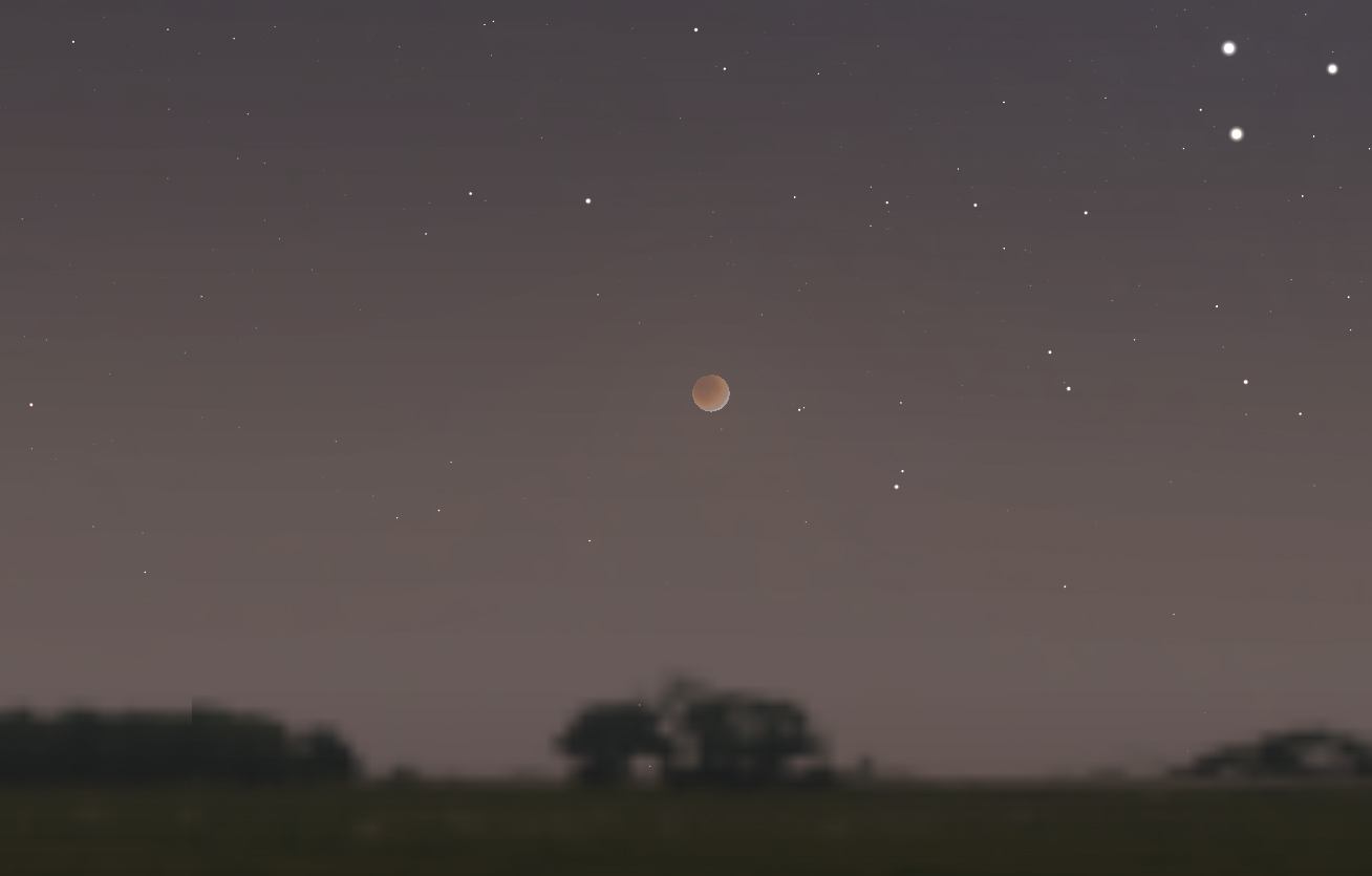 Looking low in the southeast after sunset we might, if clear, be able to observe a partially eclipsed Moon. The partial eclipse will end around midnight BST.