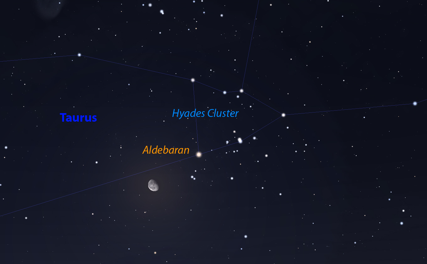 The Moon close to the Hyades Cluster.
