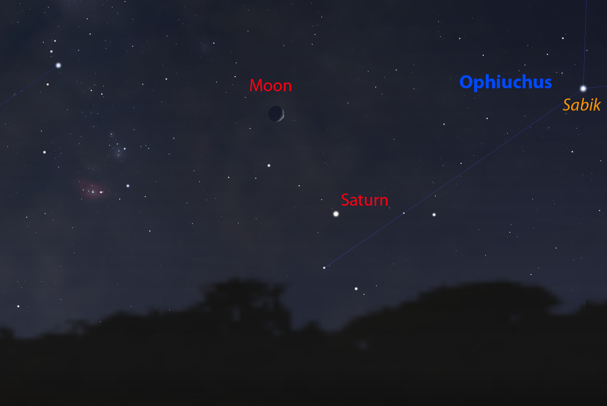 Saturn below a crescent Moon.