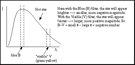 A hot star has a B-V color index close to 0 or negative, while a cool star has a B-V color index close to 2.0. Other stars are somewhere in between. Here are the steps to determine the B-V color index: