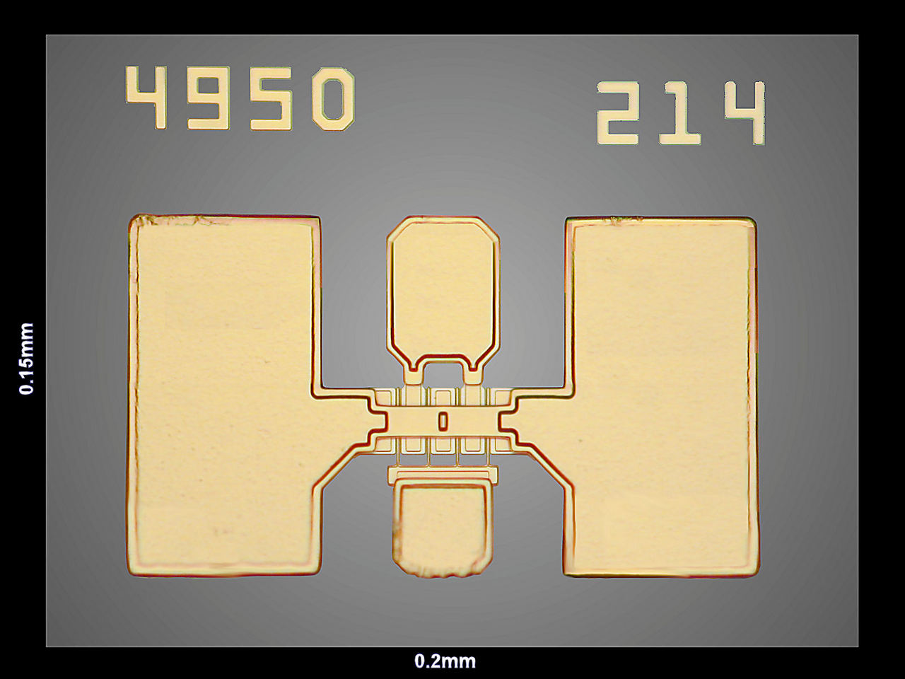 A HRL transistor used in the 4 stage amplifiers for the Very Small Array.