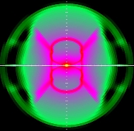 | Gas density in a 2.5D simulation of outflow from the binary during a nova explosion (click to get a 3MB mpeg movie of the simulation). |