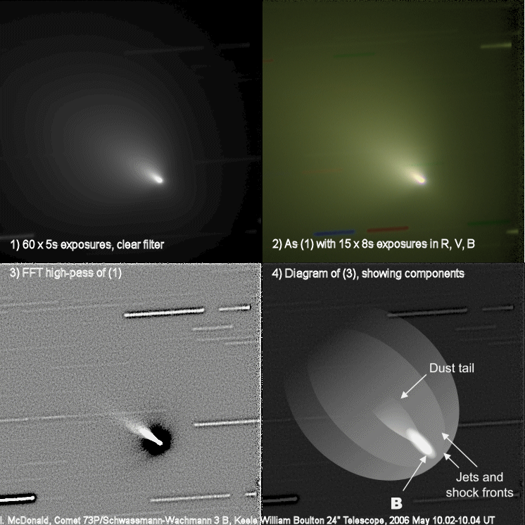 Image information: See image. Images taken 10/05/06 21:11 - 22:50, 11/05/06 00:56 - 01:14 (UT). Physical information: Magnitude: approx. 4-5 (nuclear magnitude measured at ~10 within 15"); dist. from Earth: 0.0728-0.0722AU (10.86-10.80Mkm), dist. from Sun: 1.0247-1.0238AU, scale: 52.7-52.2km/pixel. |
